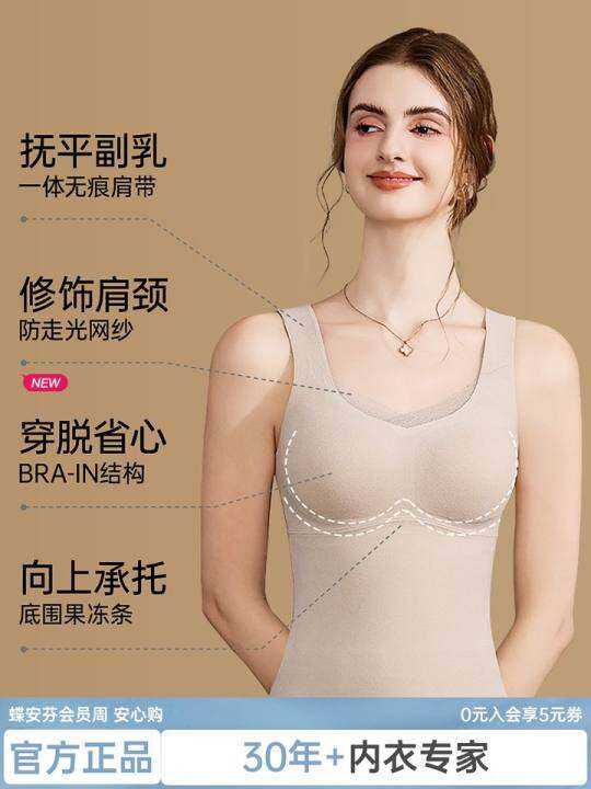 蝶安芬无痕保暖背心女打底春夏加绒加厚内搭带胸垫一体式发热内衣