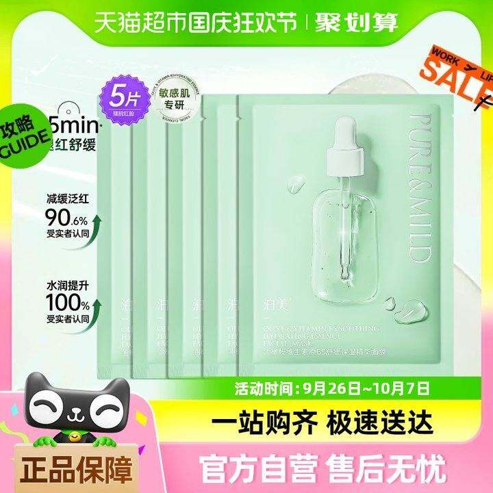 泊美油橄榄B5精华面膜5片舒缓补水保湿褪红敏感肌可用无添加面膜