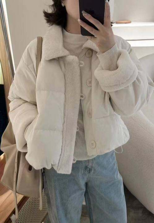 7086冬季新款翻领仿羊羔毛羽绒服外套上衣,M胸围130,长50