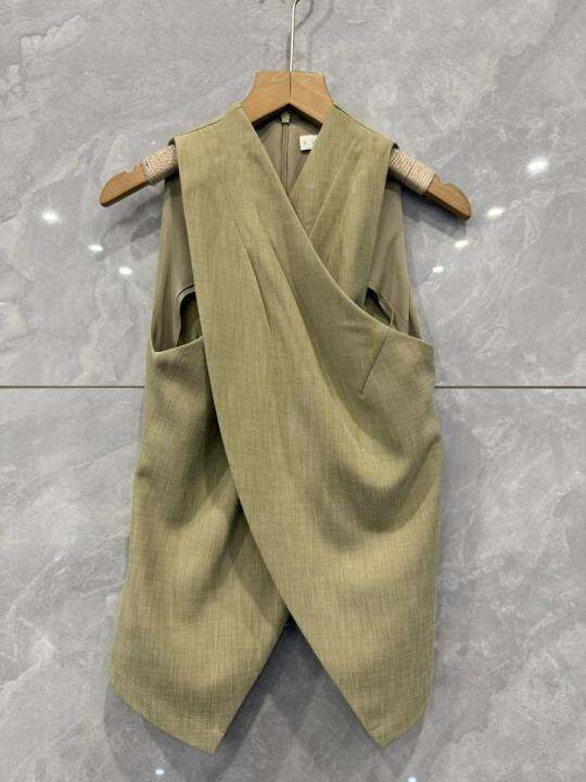 小众 通勤 无袖交叉V领无袖背心女士上衣Y37