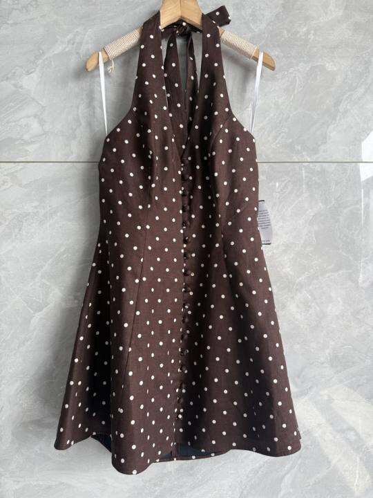 亚麻 挂脖式 无袖收腰修身度假休闲短款连衣裙L3966