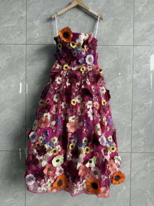 欧美小众重工立体刺绣花朵修身蓬蓬大摆 抹胸连衣裙L3967