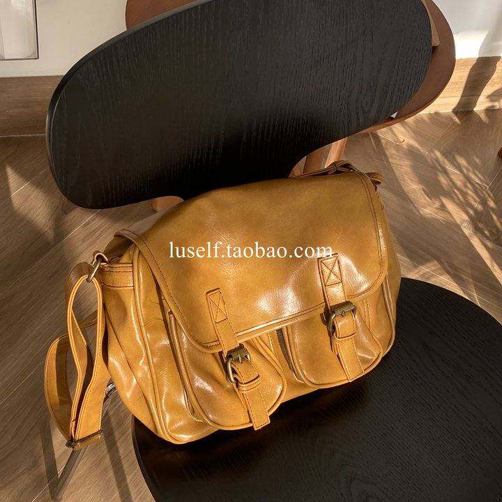 古着感邮差包包 学院风油蜡皮复古大包包斜挎包ins大容量单肩包