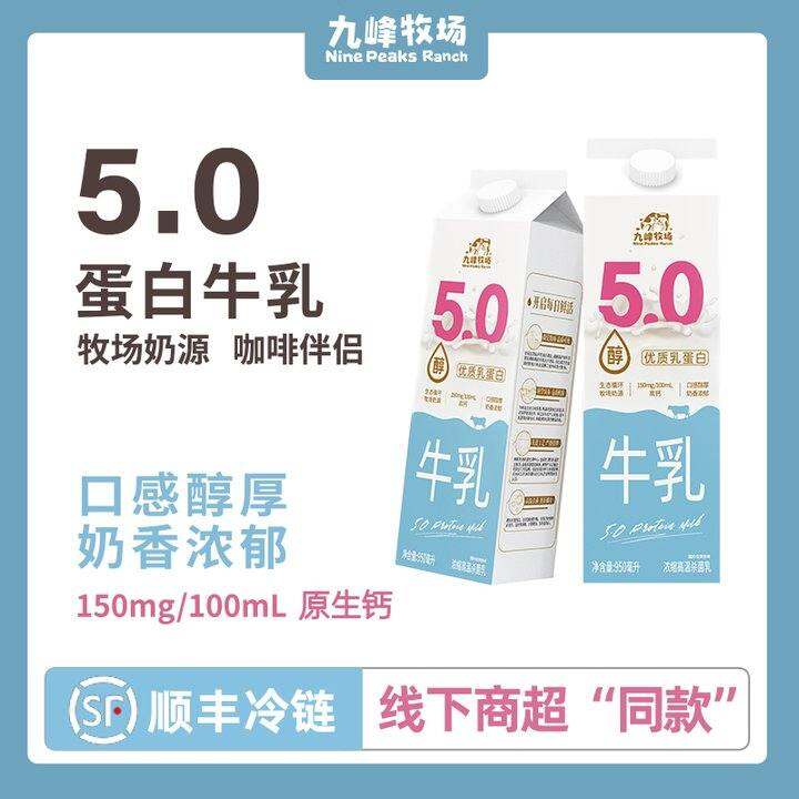 九峰牧场5.0蛋白低温牛奶950ml*2瓶diy咖啡奶茶冷藏牛乳纯厚乳