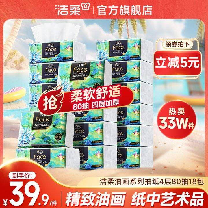 洁柔纸巾油画 画抽取式卫生纸家用卫生纸4层加厚80抽艺术可湿水面巾纸餐巾纸