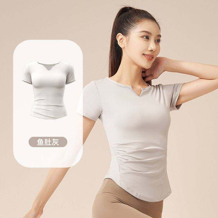 聚衣堂V领短袖裸感健身褶皱夏季新款女装T恤百搭运动上衣跑步瑜伽