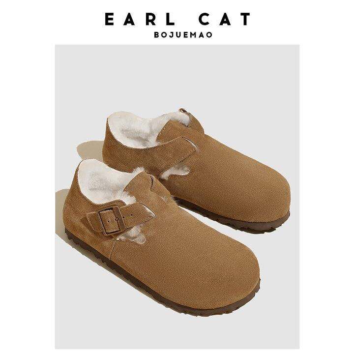 伯爵猫勃肯鞋女2023秋冬加绒真皮软木皮毛一体平底博肯鞋三喜同款