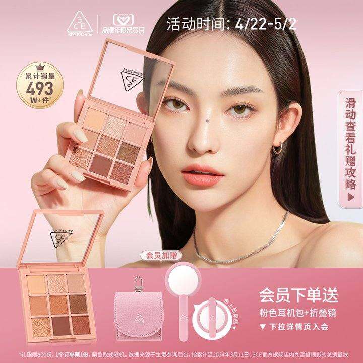 【会员日】3CE九宫格 哑光大地色灰粉色新手眼影橘棕盘女礼物