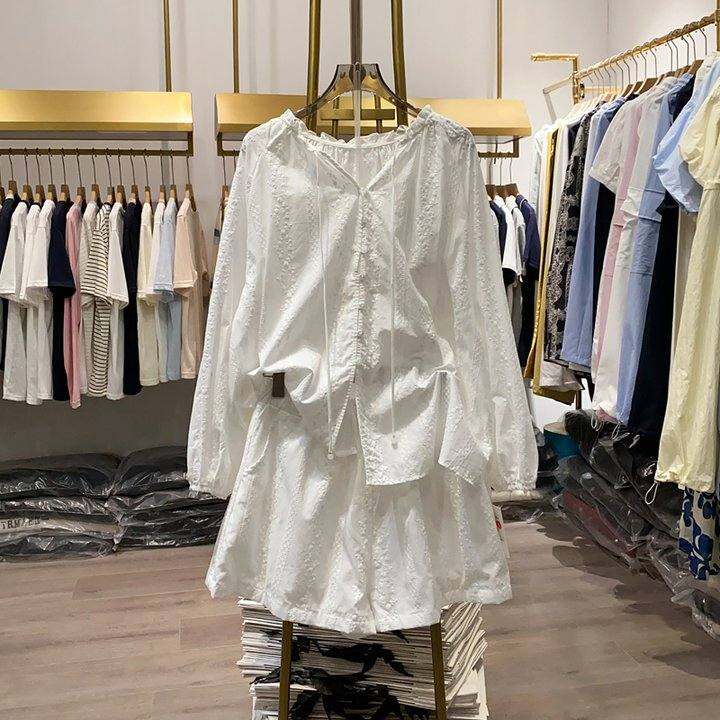 【晓艾档口实拍】夏日新品简约百搭V领系带小衫女休闲短裤套装潮