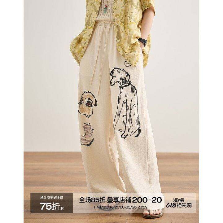 octopusme章鱼家印花宽松休闲裤山本裤白色慵懒长款垂感凉凉裤女