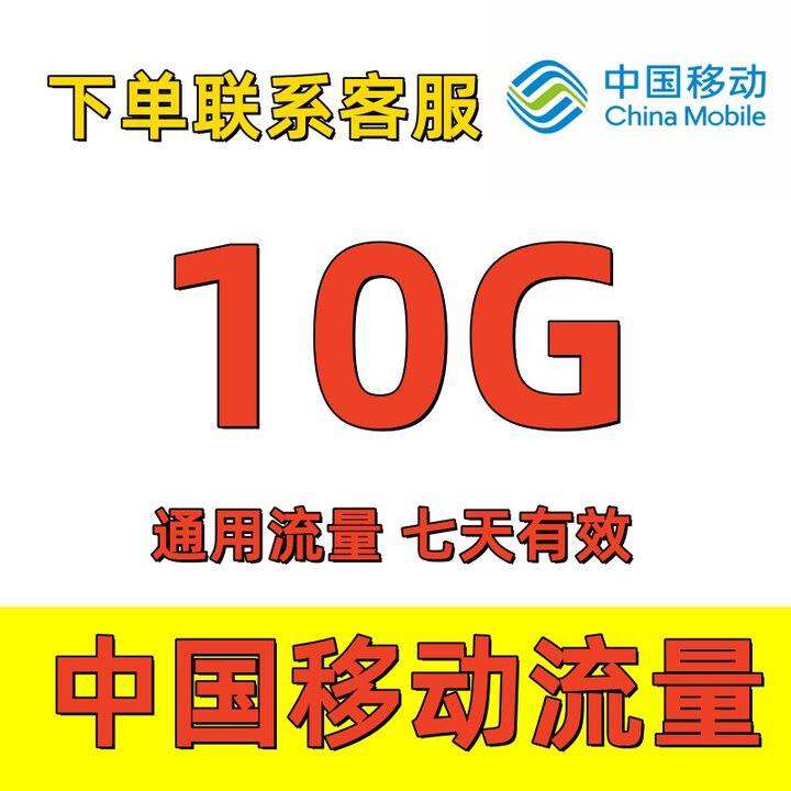 全国移动流量充值10GB2/3/4/5G通用快速充值全国上网流量7天有效