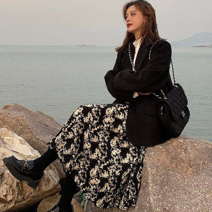 碎花半身裙女秋冬中长款a字裙子遮胯显瘦气质复古高腰赫本风伞裙