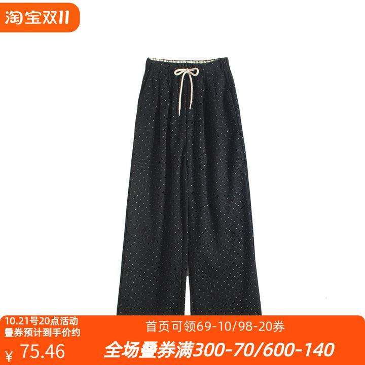 秋冬加厚波点休闲直筒裤女2024年新款松紧腰梨型身材显瘦阔腿裤潮