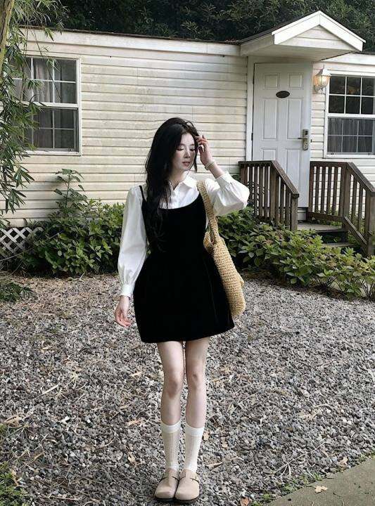PPHOME赫本风黑色丝绒连衣裙女秋冬法式千金收腰a字蓬蓬裙公主裙
