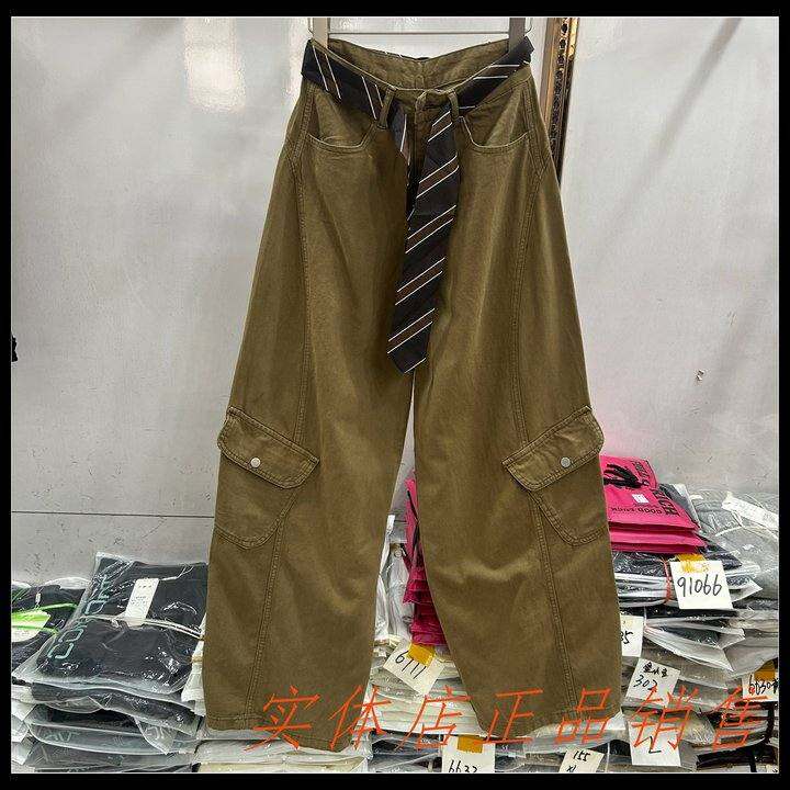 沐沐家18820工装牛仔裤高腰显瘦大口袋阔腿裤宽松休闲直筒长裤
