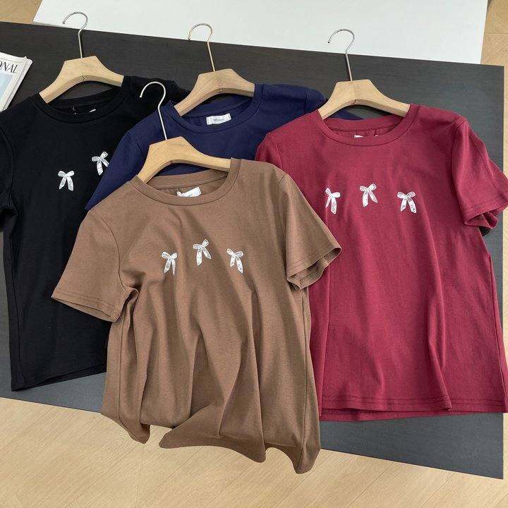T恤纯色夏季小众蝴蝶结新款2025短袖原来直筒休闲上衣 H#15