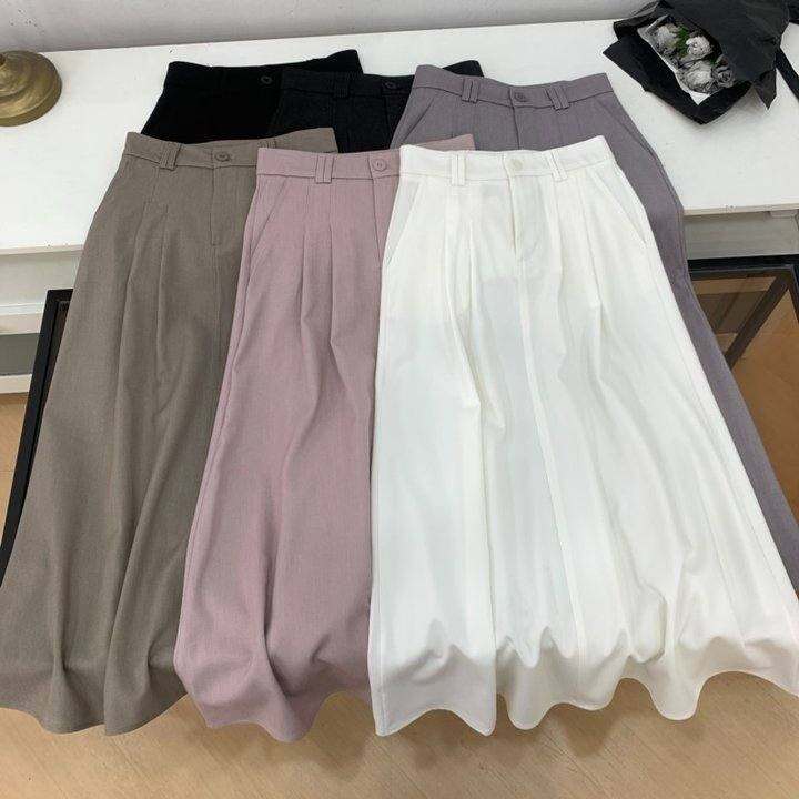 夏季新款半身裙纯色宽松高腰显瘦休闲百搭A字中长裙F#15