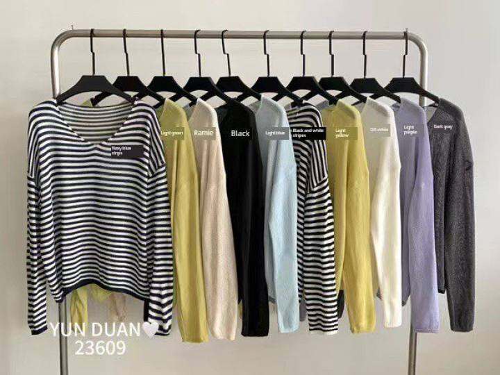 E47【精品单】针织衫女夏季新款时尚百搭圆领显瘦短袖上衣0.22KG