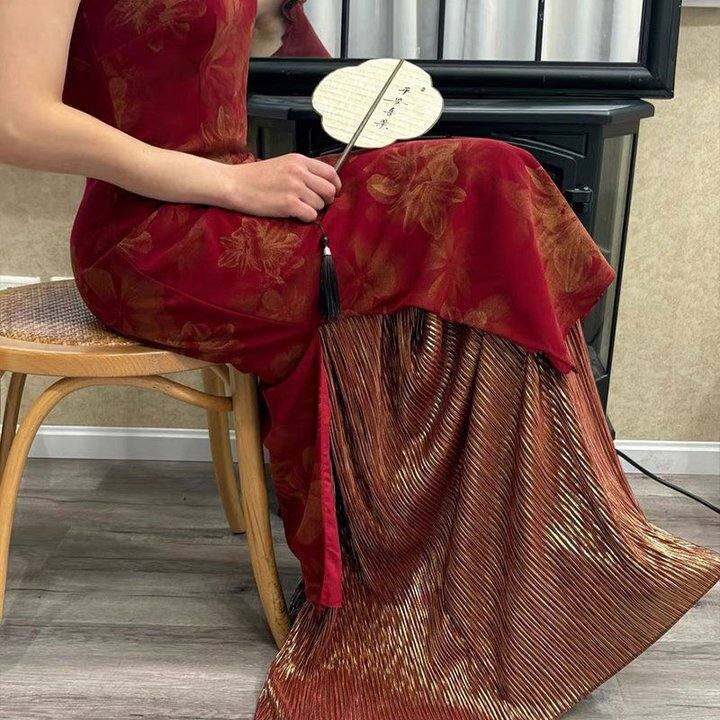 「喜步生莲」红色国风新中式订婚敬酒礼服鱼尾旗袍 百褶裙 两件套