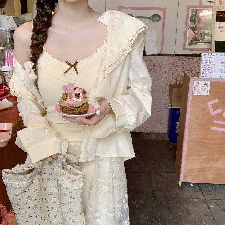【Dear YN】春季新款蝴蝶结点缀带胸垫背心弹力修身上衣小吊带女