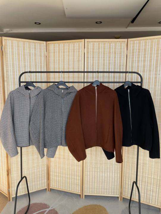 昨天拿到了实物,是那种有点编织纹理的千鸟格面料,含羊毛很轻是单层的,应该只能开春穿,款式还是挺庸懒随意的,做工的话这家一般都可以没啥问题