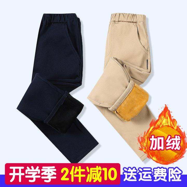 儿童卡其色裤子加绒男童女童秋冬款保暖加厚长裤藏青色小学生校服
