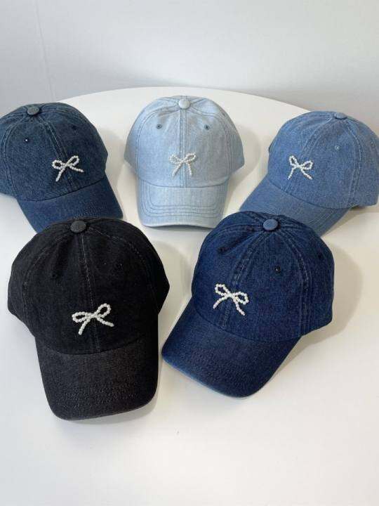 春夏新款韩国进口可爱珍珠蝴蝶结鸭舌帽女ins牛仔出游防晒棒球帽