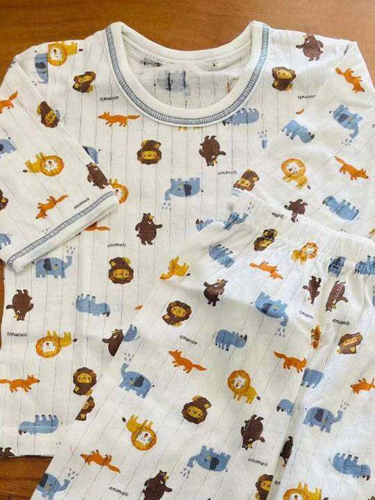 一包价日系吸汗透气柔软男女儿童春夏秋打底家居七分袖七分裤套装