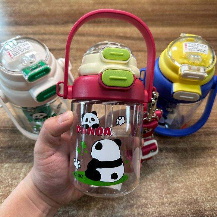 希乐熊猫背带双饮杯可吸饮可直饮Tritan奶瓶材质便携儿童水杯子