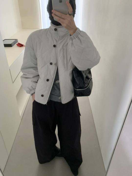 ABOUT MOON 撞色立领薄棉外套女 25秋冬新款质感显瘦短款加厚上衣