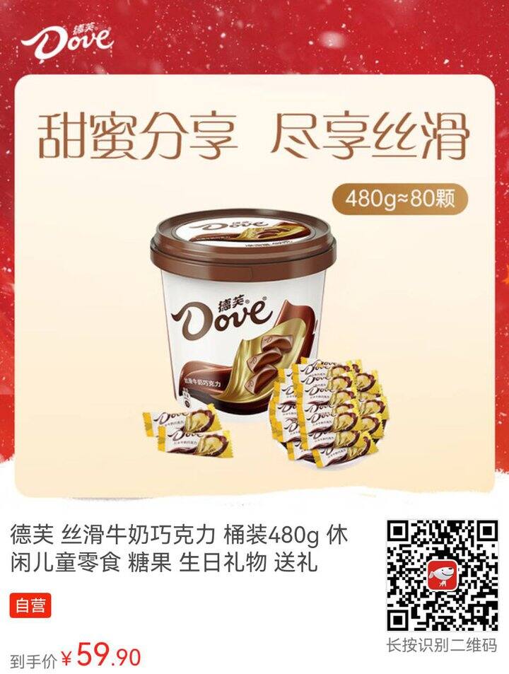 【京东】德芙 丝滑牛奶巧克力 桶装480g 休闲儿童零食 糖果 生日礼物 送礼