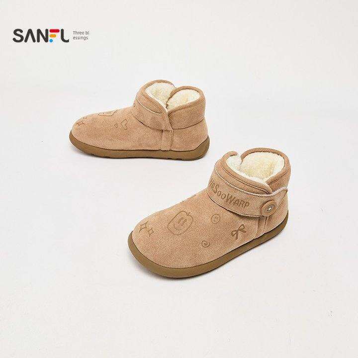 三福女毛毛鞋冬季冬日奇幻乐园趣味印花加绒雪地靴女鞋847959