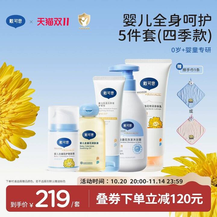 【拍5件套叠14.19超级补贴+16.95淘金币+9折消费券=169,折33.8/瓶】戴可思宝宝新生儿超值套装洗发沐浴露护肤婴儿必备用品面霜抚触油