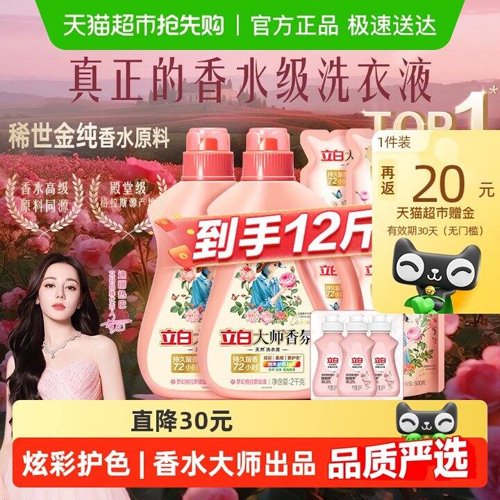 速度!立白大师香氛香水洗衣液6kg,右上角金币下单付88.6-20猫卡=68.6