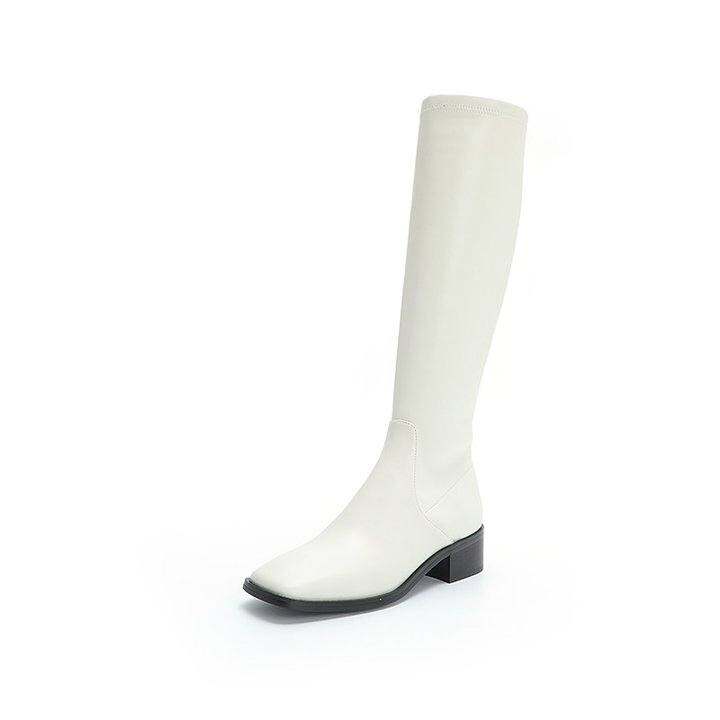 NUL 小牛皮弹力纤维方头时尚瘦腿长靴时装女靴 ZK2215087