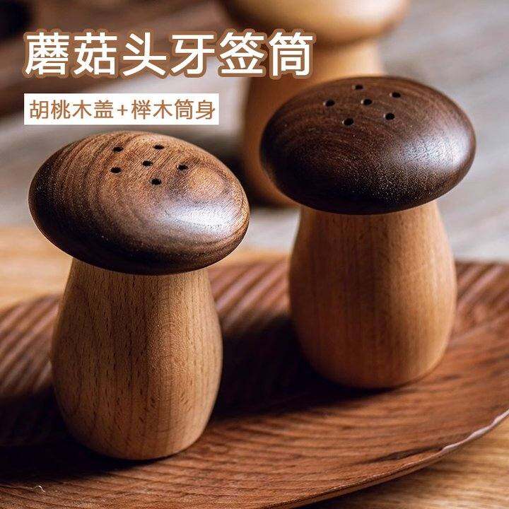 创意覆古蘑菇牙签盒高颜值胡桃木质精致可爱中式家用古风轻奢摆件