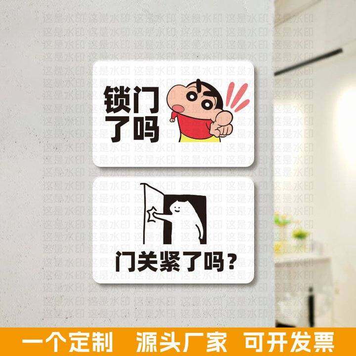 定制亚克力温馨提示锁门瞭么门关紧瞭吗警示标识牌蜡笔小新表情包办公室卡通自粘简约创意温馨提示墙贴