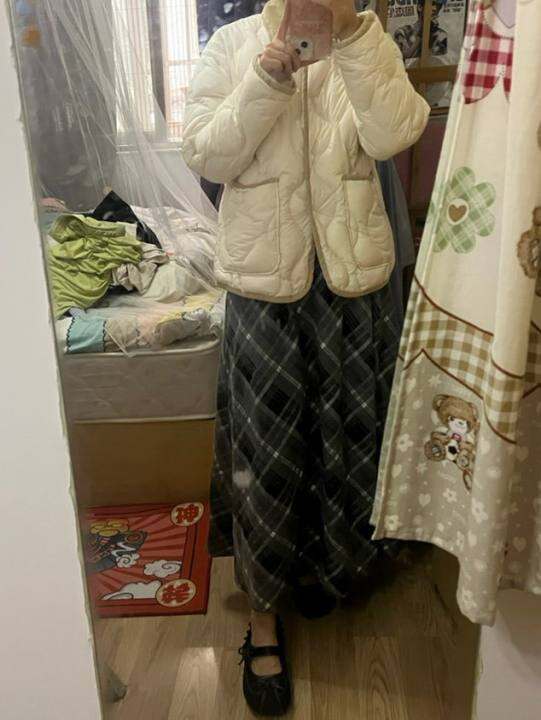 非常好看的裙子!!!我买了蛮多对白的衣服,如果样子喜欢的话质量和价钱还是搭配的…这条裙子是仿毛呢,摸着有毛呢的感觉,不厚,作为秋装比较合适,不是非常宽的版型很优雅,还有口袋,好文明!!!就是我穿蛮长的,身高160体重48,穿着到脚面,这是我上身图