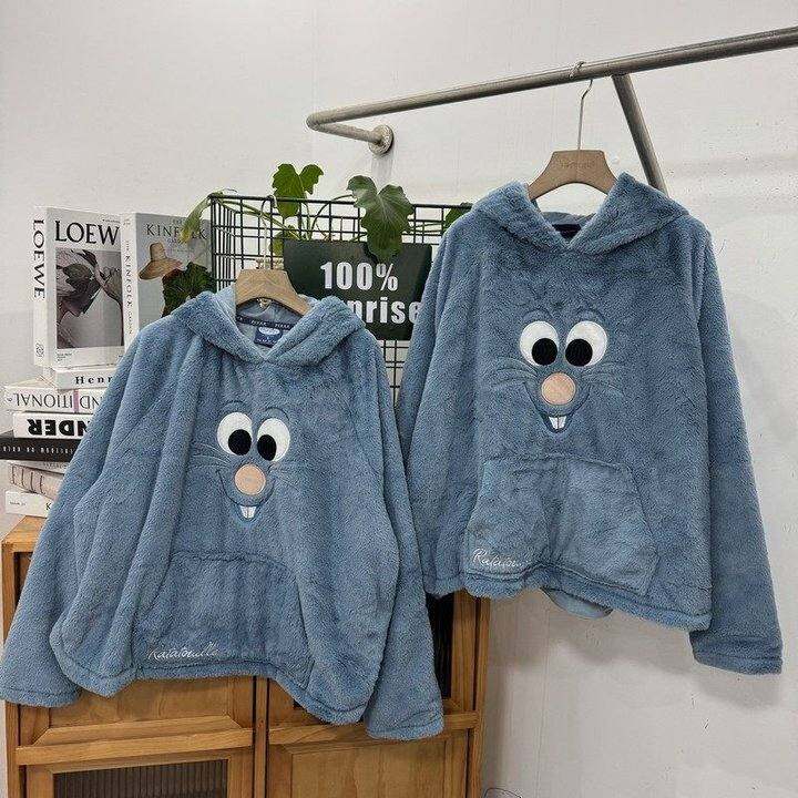 K1 P元超温暖宽松休闲卡通刺绣居家毛绒连帽卫衣 超值包邮