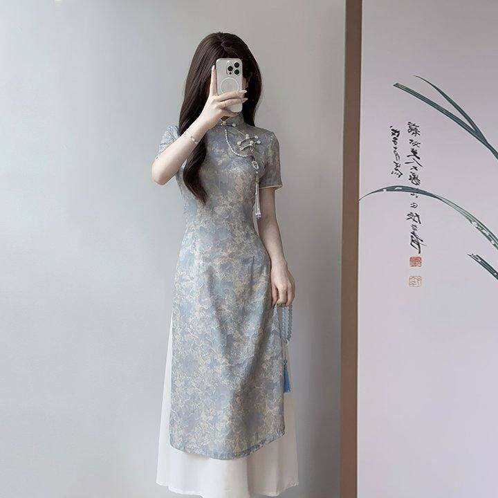 新中式国风旗袍2025新款奥黛夏季日常可穿素雅清冷感年轻款连衣裙