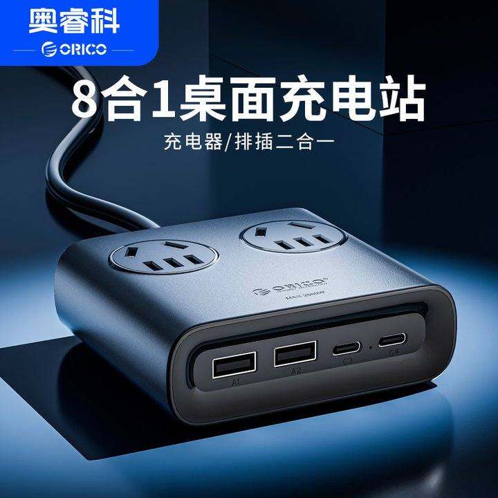 奥睿科小方砖插座插排拖线板带usb多功能桌面充电站家用办公扩展