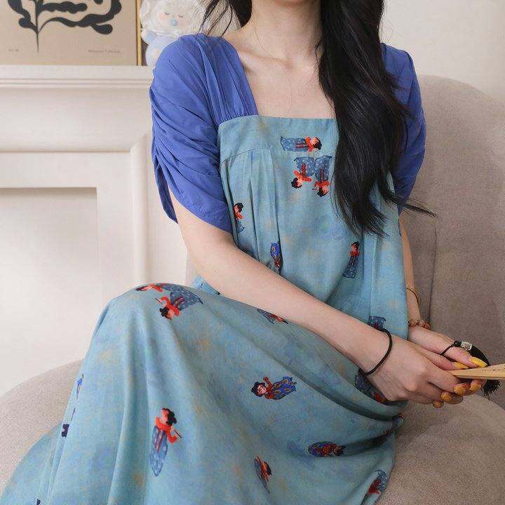 新中式国风覆古棉绸洋装短袖薄款裹胸睡裙女可外穿高级感家居服