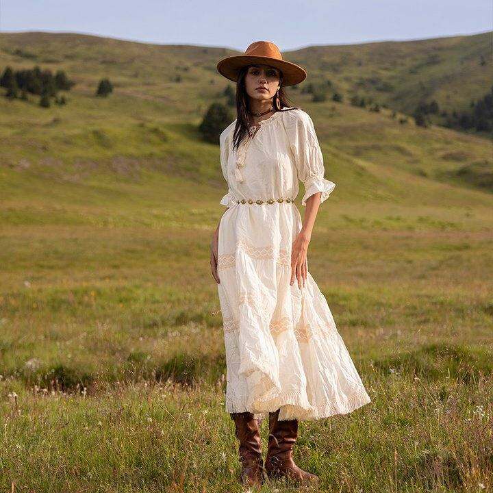 波西米亚连衣裙民族风长裙长袖裙子大西北新疆旅游衣服女装流苏裙