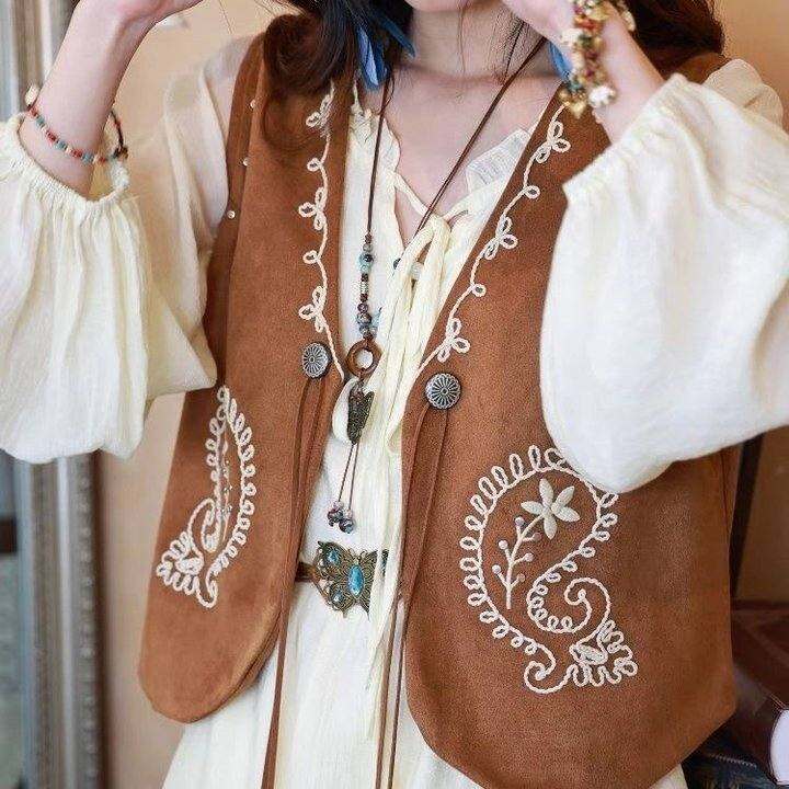 波西米亚覆古刺绣马甲背心宽松显瘦度假穿搭无袖背心外搭小众上衣