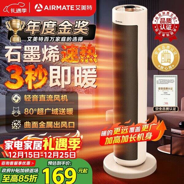 140.5💰艾美特(AIRMATE)【超级单品】暖风机/石墨烯取暖器/电暖器/电热取暖器 家用全屋升温电暖气小型小太阳热风机 K72,自营包邮,千万销冠https://u.jd.com/AOCl3ZZ