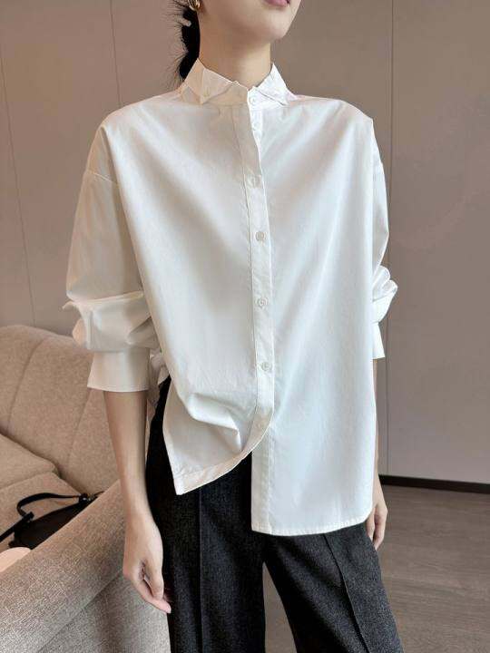 PINKEEN白色polo领长袖衬衫女冬季2025新款叠穿内搭时尚通勤上衣