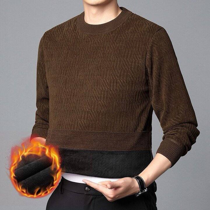 秋冬新款男士一体毛衣绒毛打底加绒加厚保暖爸爸休闲套头针织衫