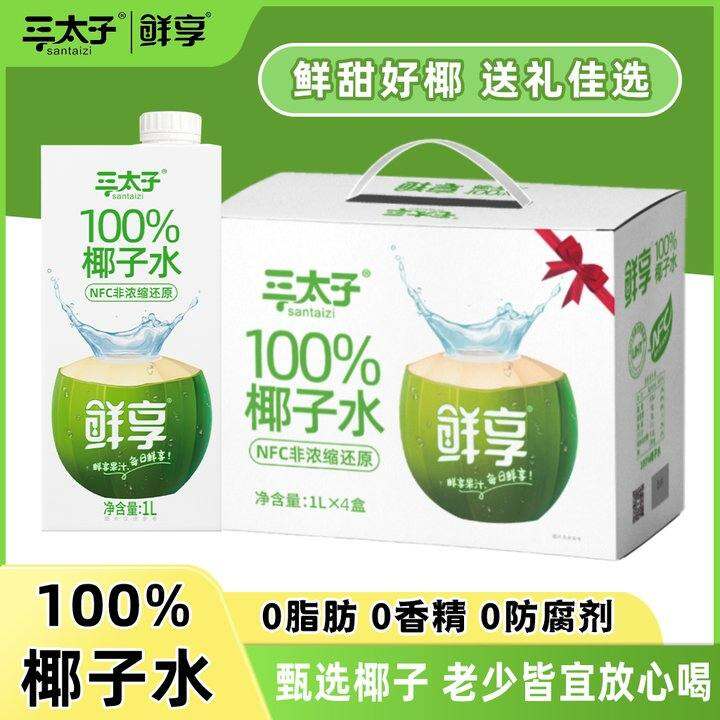 三太子海南100%椰子水1L装鲜榨椰青水天然电解质水聚餐家庭装大瓶