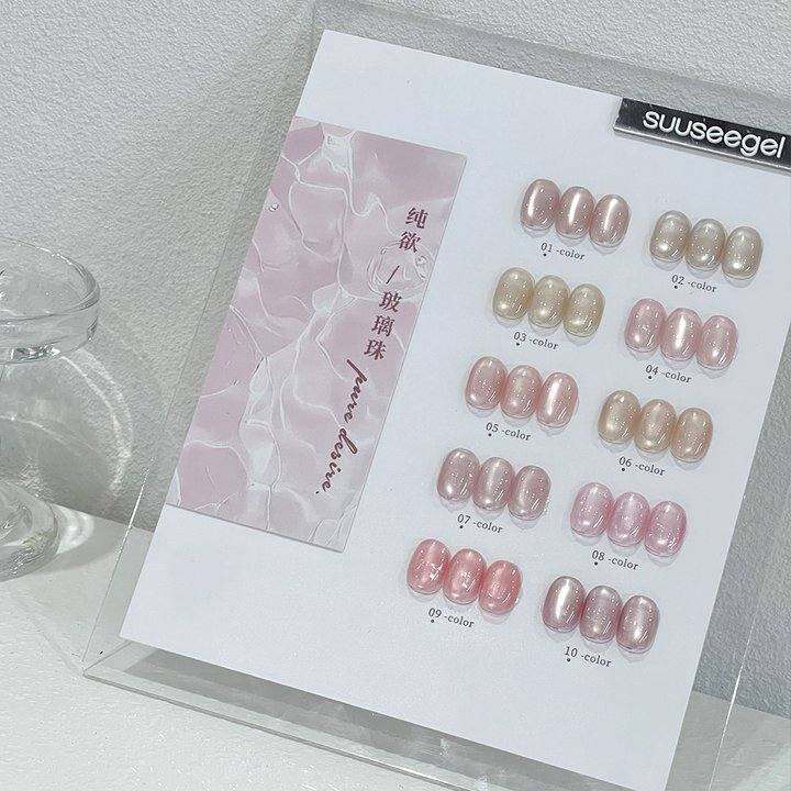 束色新款纯欲玻璃珠猫眼胶美甲网红水光玻璃珠瓷白丝绸猫眼甲油胶