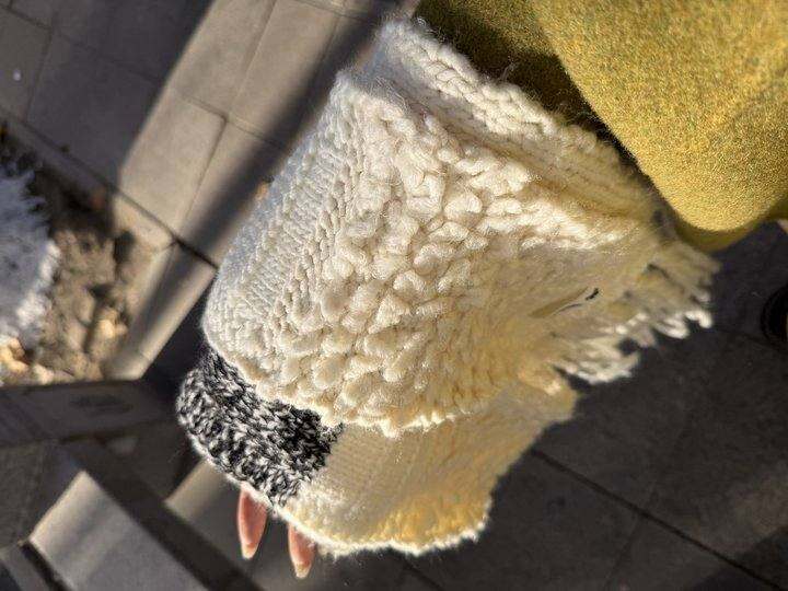 这个围巾我也买了,颜色特别,款式也蛮特别的,本人已经变成了围巾狂魔,穿搭配饰也很重要!!!!天天不上班就想买东西,谁懂😋